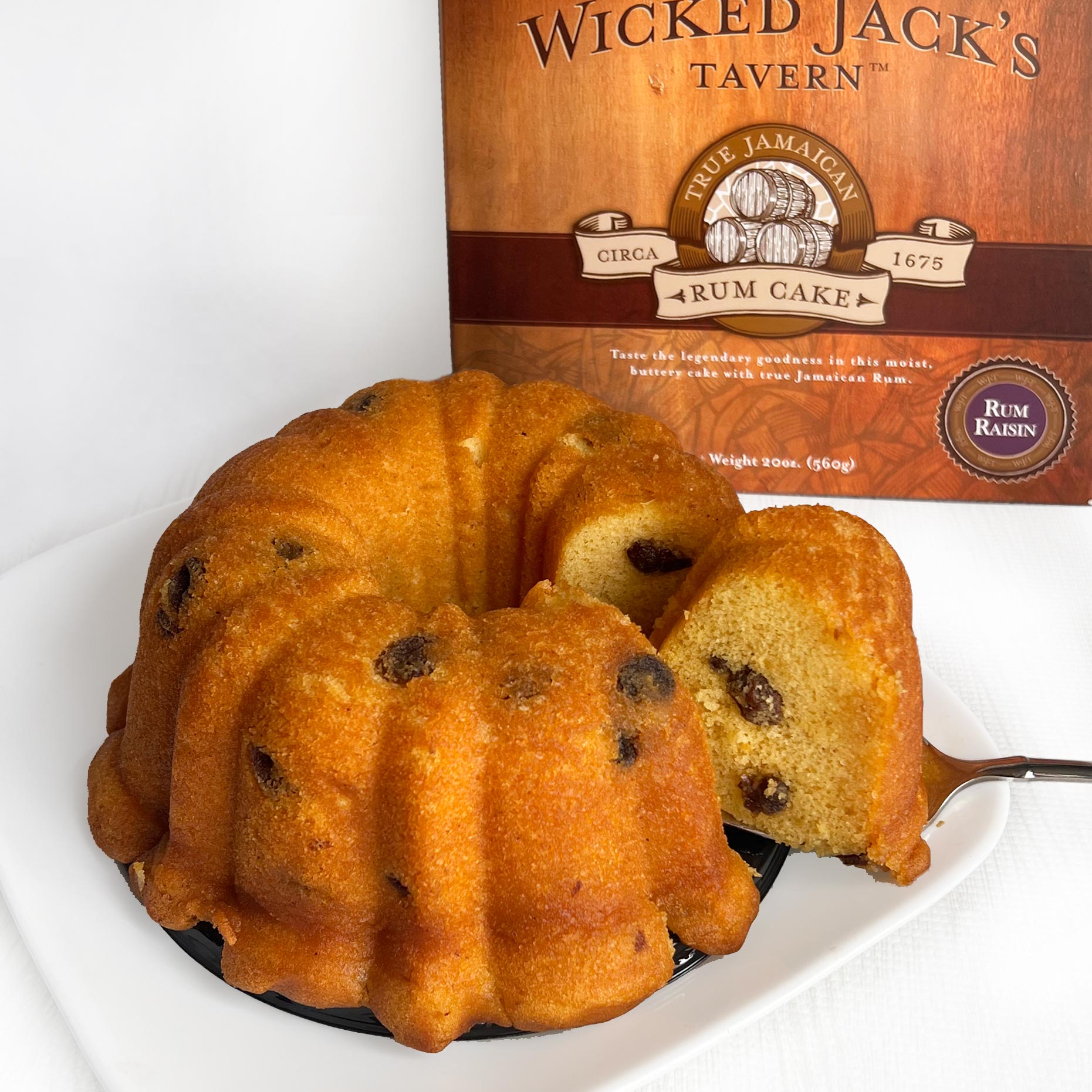Rum lovers and cake lovers will fall for the exquisite, rich, and full taste of Wicked Jack’s Tavern True Jamaican Rum Cakes. Carefully crafted recipes derived from generations of Jamaican tradition has produced a rum cake so flavorful, so powerful, it has quickly gained a reputation as the best tasting rum cake available anywhere. Its moist and buttery texture, paired with a rum soaked glaze, adds a delicious detail that makes all other rum cakes walk the plank.